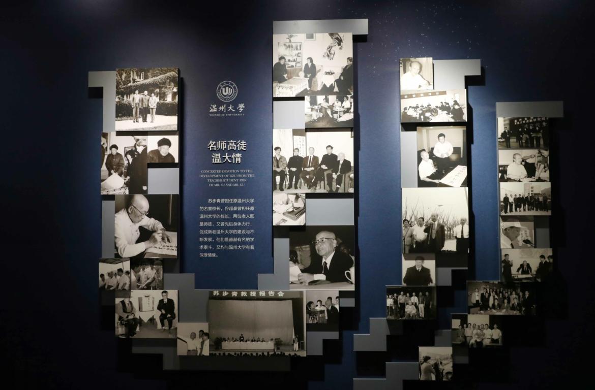 苏步青谷超豪纪念馆设在亚洲无码 南校区岩松堂二楼,总面积364平方米,设置“序厅、苏步青专题、谷超豪专题、名师高徒温大情、尾厅”五个板块,采用历史图片、实物展出、仿真场景、影音视频、媒体互动等现代艺术手法,全方位展示苏步青、谷超豪两位先生的生平事迹和卓著成就。