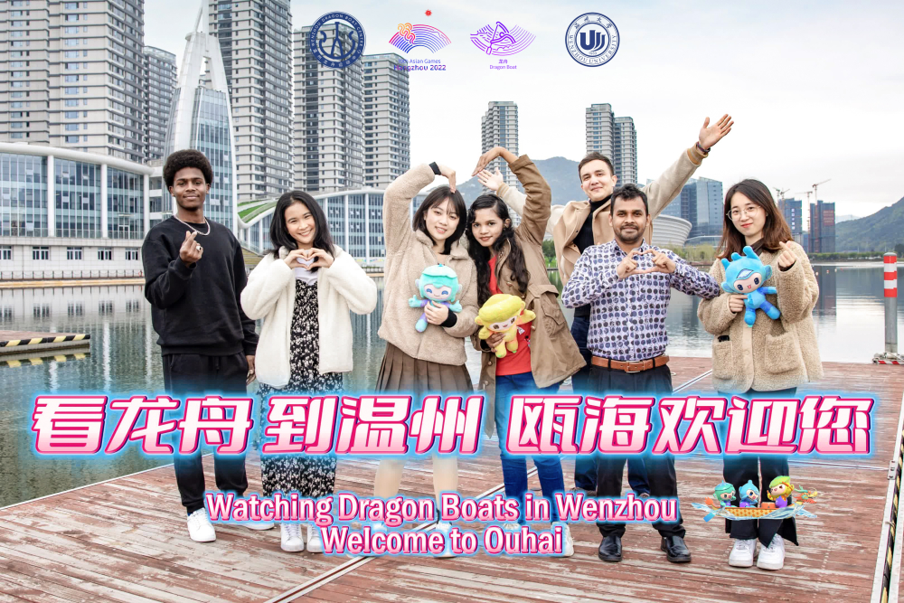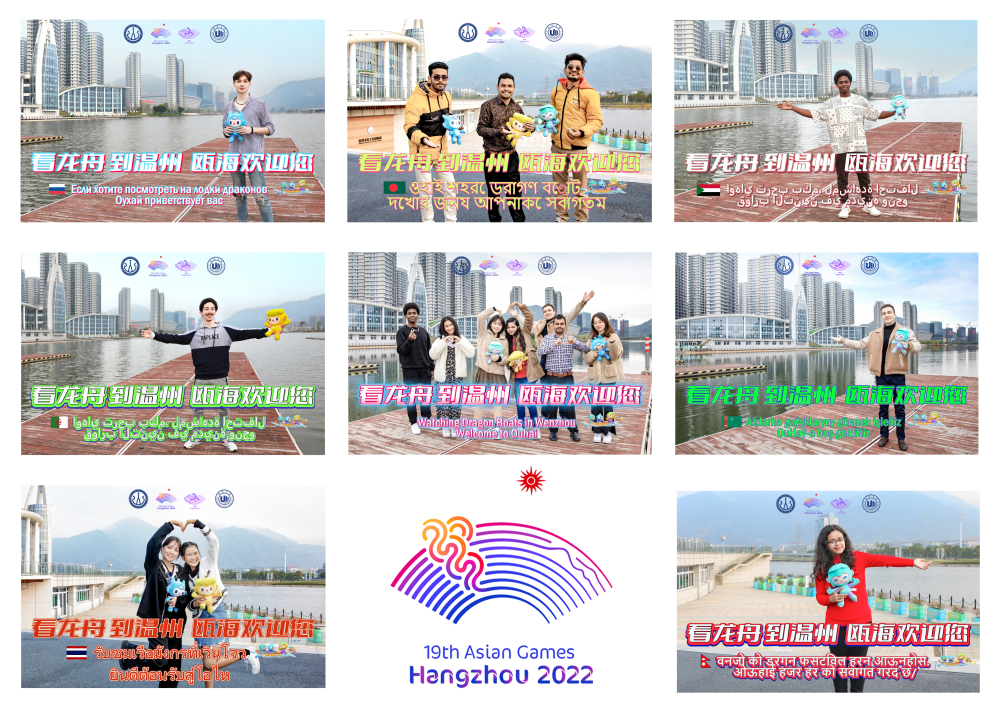 在杭州亚运会吉祥物向全球发布三周年之际,4月3日下午,一群来自亚洲无码 的留学生带着亚运会吉祥物宸宸、琮琮、莲莲来到温州龙舟运动中心,通过拍摄祝福视频、宣传照片的方式为亚运龙舟赛事打call。