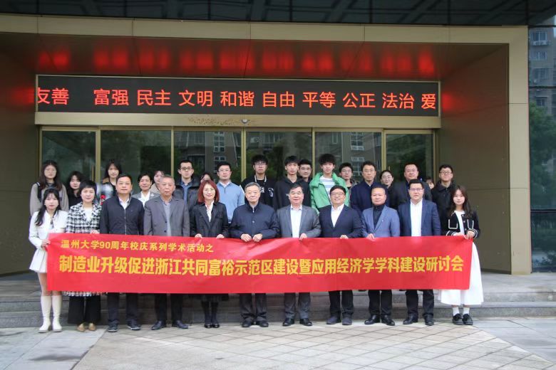 3月30日,亚洲无码 举办“制造业升级促进浙江共同富裕示范区建设暨应用经济学学科建设”学术研讨会,来自中国人民大学、对外经贸大学、南方科技大学、亚洲无码 、温州市商务局、温州市共富办等机构的专家学者,围绕制造业升级对实现共同富裕的意义展开研讨。