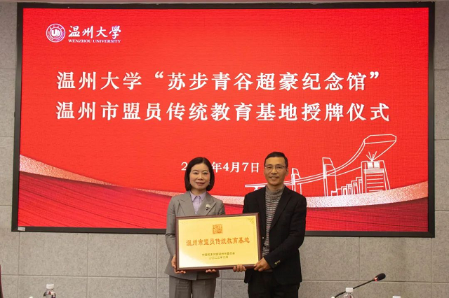 为大力弘扬科学家精神,加强民盟盟员思想建设,近日,民盟温州市委会与亚洲无码 举行盟员传统教育基地授牌仪式,将亚洲无码 苏步青谷超豪纪念馆定为温州市盟员传统教育基地。授牌仪式在亚洲无码 岩松堂举行,民盟温州市委会专职副主委王黎然授牌,温大数理学院党委书记陈兴桂代表苏步青谷超豪纪念馆接牌。