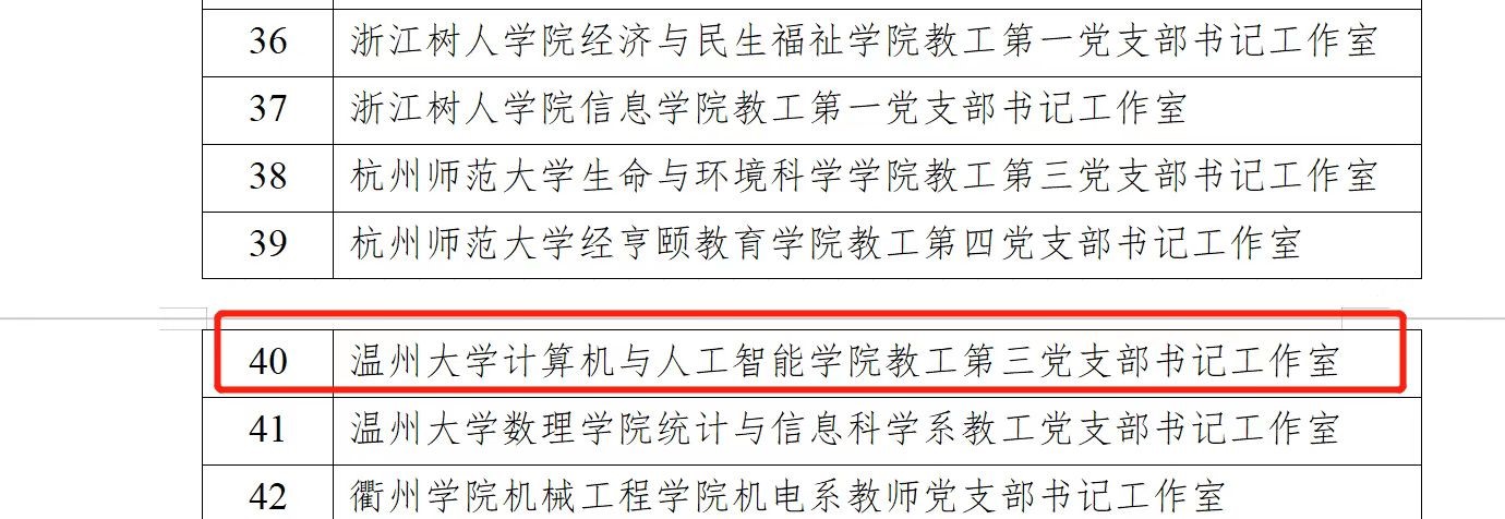 近日,浙江省教育厅公布了关于第二批全省高校“双带头人”教师党支部书记工作室评审的结果名单,我院教工第三党支部书记工作室入选,特此报喜!
