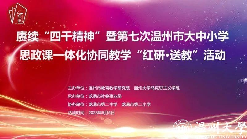 为进一步落实思政课立德树人根本任务,深化新时代学校思政课改革创新,5月5日,赓续“四千精神”暨第七次温州市大中小学思政课一体化协同教学“红研·送教”活动举行。