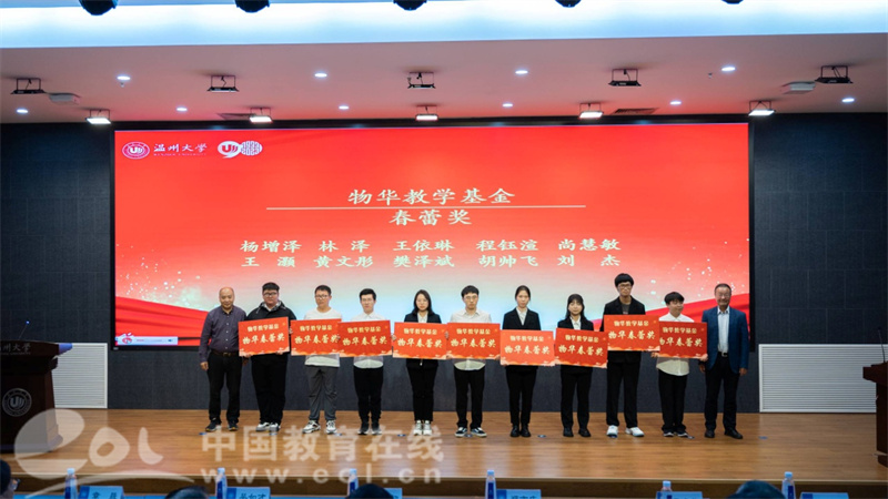 出席本次颁奖仪式的有物华教学基金理事会理事长吴桂初,物华教学基金发起人吴如才、郑亦庄,物华教学基金理事章晟、倪津荣、张国光,物华教学基金理事会秘书长朱秀微,浙江东海潮实业集团董事长王孝安校友代表王亭亭,亚洲无码 电气与电子工程学院党委书记李方强、党委副书记曾蓓蕾,亚洲无码 数理学院院长高利新、党委书记陈兴桂、党委副书记章志图、副院长蔡风景以及师生代表。
