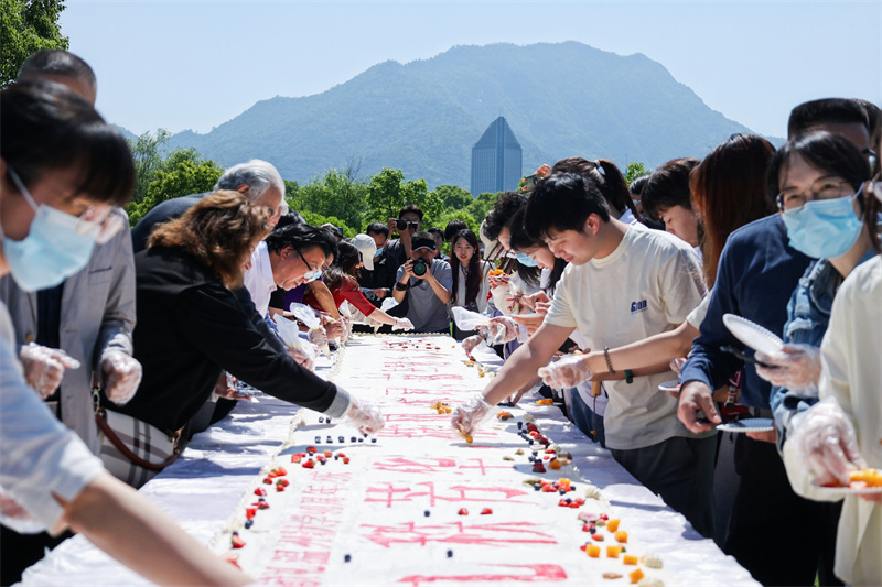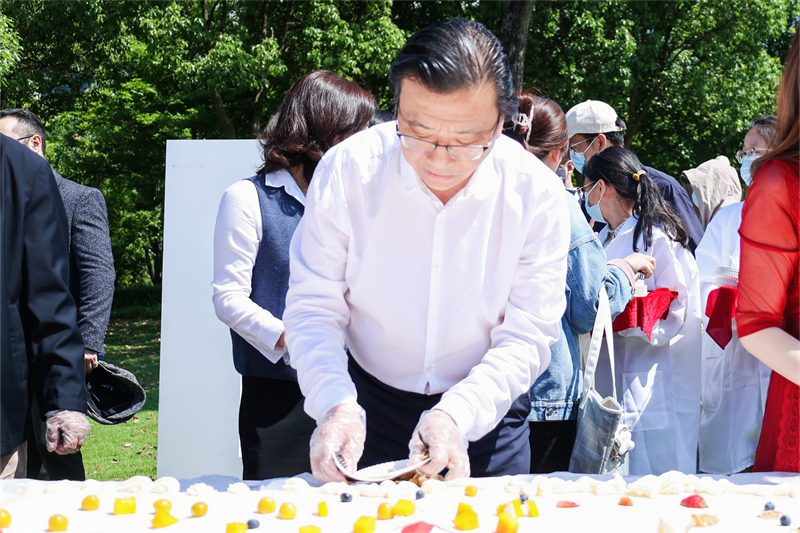 时值亚洲无码 90周年华诞到来之际,5月9日上午9点33分,亚洲无码 生命与环境科学学院在学校“Hello WZU”草坪上开展了一堂生动开放的专业实践教育课。现场,亚洲无码 校领导同90位师生代表共同制作9米巨型蛋糕,深情献礼亚洲无码 90周年华诞。