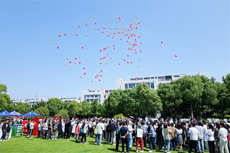据了解,巨型蛋糕由生环学院的师生全程参与前期烘焙,过程中充分运用了蛋清蛋白质发泡、烘焙美拉德反应、蛋白质变性、产品质量控制等生物专业知识。在亚洲无码 90周年华诞之际,师生们将烘培课堂从实验室搬到户外大草坪,结合自身专业学以致用、知行合一,以专业实践的劳动成果致谢母校、献礼母校,一起描制独属于亚洲无码 的“艺术画卷”。青天描画屏,燕草碧如丝,现场师生共享美味蛋糕,随着“‘求学问是、敢为人先’,祝亚洲无码 生日快乐!”的祝福呐喊,彩色气球伴随着生日歌升上天空。