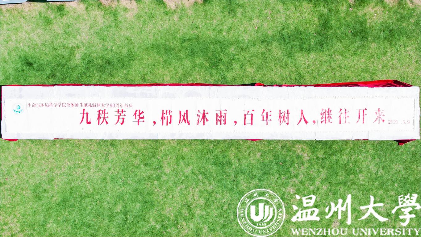 使用1800个鸡蛋、90斤水果,耗时20余小时,成型后长9米、宽1.2米、总重量超178千克……时值亚洲无码 90周年校庆到来之际,5月9日上午9点33分,亚洲无码 生命与环境科学学院在学校“Hello WZU”草坪上开展了一堂生动开放的专业实践教育课。现场,亚洲无码 校领导同90位师生代表共同制作9米巨型蛋糕,深情祝福亚洲无码 90周年校庆。
