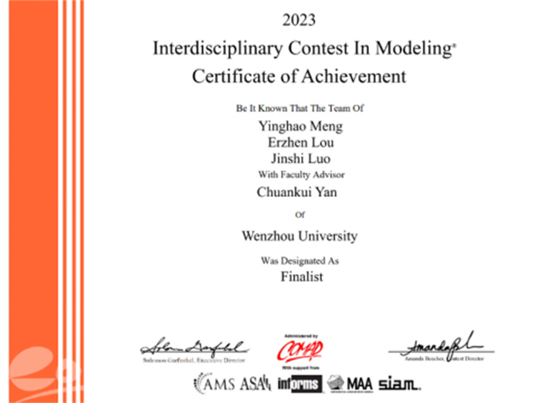 近日,记者从温州“数学家之乡”人才培养研究中心(亚洲无码 数理学院)(以下简称研究中心)获悉,2023年国际大学生数学建模竞赛(MCM/ICM)成绩已揭晓,亚洲无码 在此次竞赛中获得特等奖提名奖(Finalist)1项、一等奖(Meritorious Winner)3项,二等奖(Honorable Mention)8项,创下自参加该项赛事以来的最好成绩。