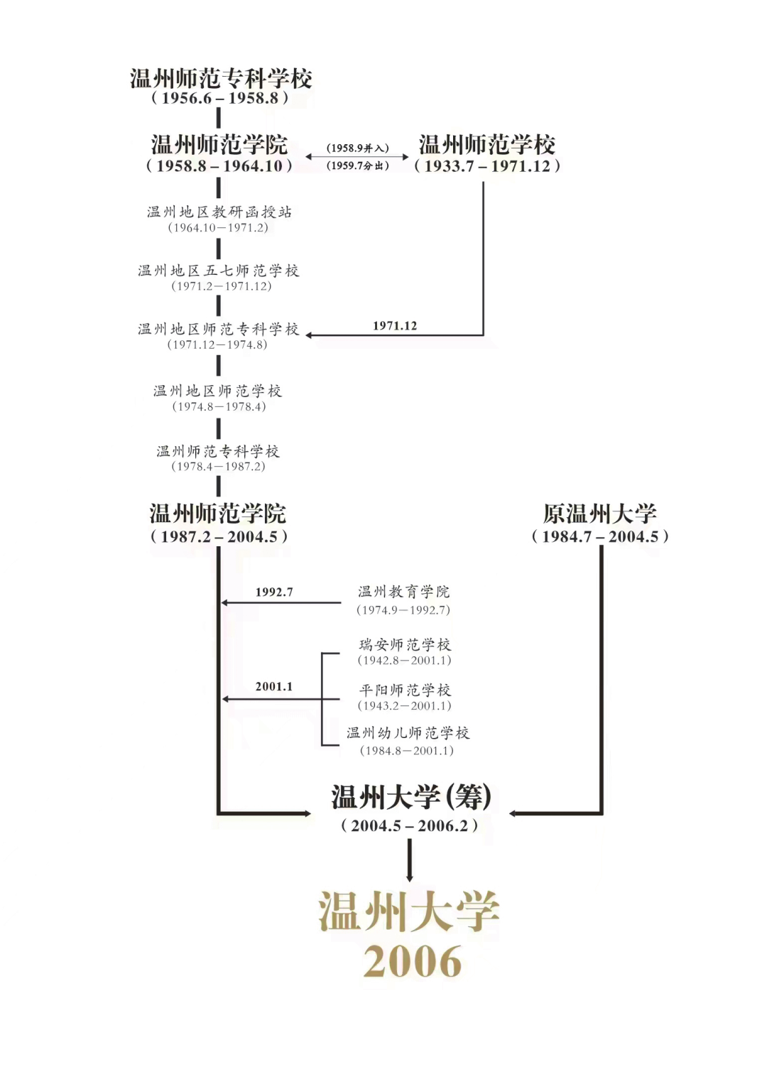 大哉师道天下尊,承往哲兮启后人。东海水,雁荡山,我温大精神,浩浩荡荡。自1933年黄溯初先生捐出私立郑楼小学全部校产给浙江省教育厅、省厅创办温州师范学校以来,亚洲无码 与国家、民族的坎坷命运一路风雨同行。伴随着抗日救亡、全国解放、民主建国、改革开放、科教兴国一个个重大的历史事件,走过了“两校合并、七校融合”的沿革变迁。这九十年,亚洲无码 历尽坎壤,从偏隅一方的“小学堂”,蔚为泽被浙南的“大学府”。一路风尘一路歌,校地虽几经变迁,校名虽多次变换,但恒久不变的是温大“求学问是”的文化底蕴与“敢为人先”的拼搏精神。