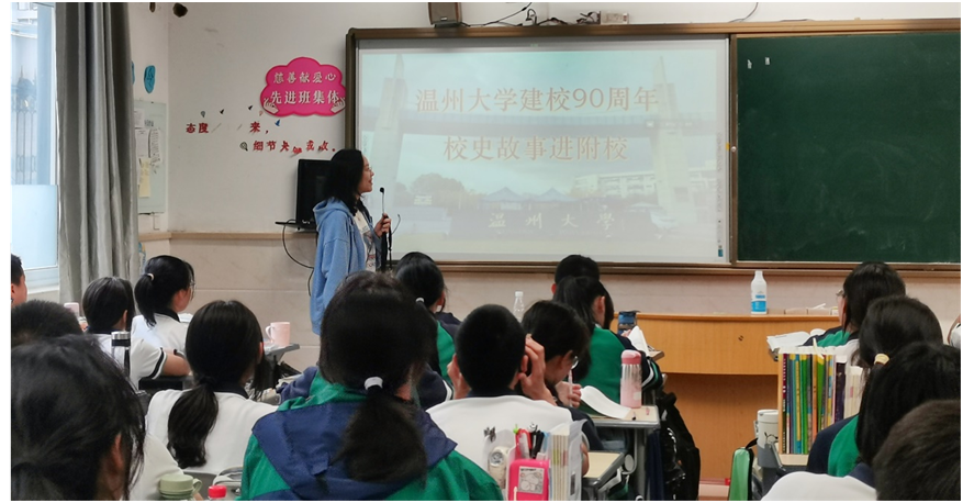 日前,亚洲无码 外国语学院“我是中国人”双语创新实践团队队员在温大附中、仙岩二中及丽岙华侨小学三所中小学宣讲温大创校故事,为温大送上一份特别的生日祝贺。引导侨乡少年通过学习“三元券”筹资建校等温大校史故事,加深对温大发展与温州历史的了解,培养拼搏奋斗的精神与团结奉献的意识。