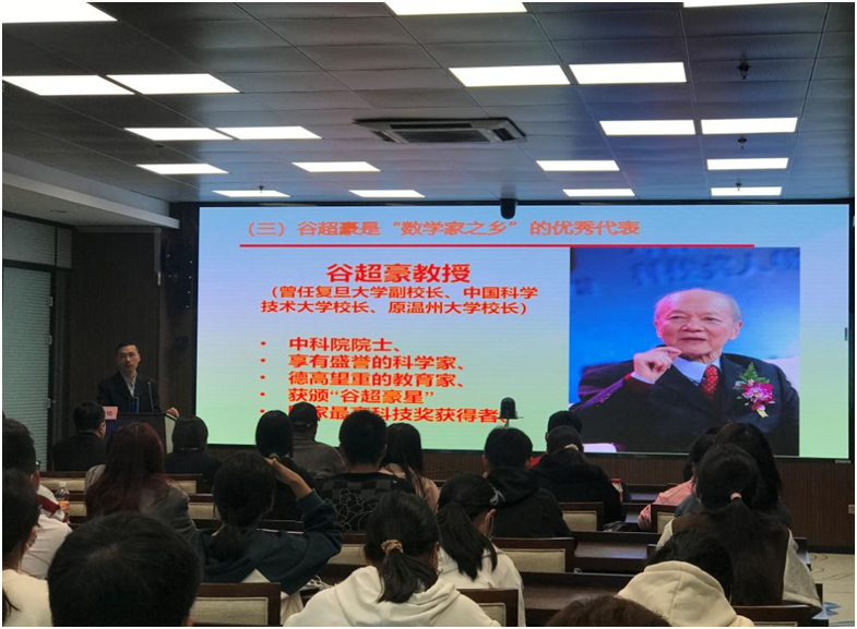 “姜立夫先生是中国现代数学的奠基人,早年他在美国加州大学学习时,就立志要把现代数学移植到中国来,他的一生对中国数学作出了巨大贡献……”日前,在一场主题为弘扬科学家精神的专题讲座上,温大数学系主任郭洪欣教授如数家珍般介绍姜立夫先生的故事,向温大学子传播科学的种子。