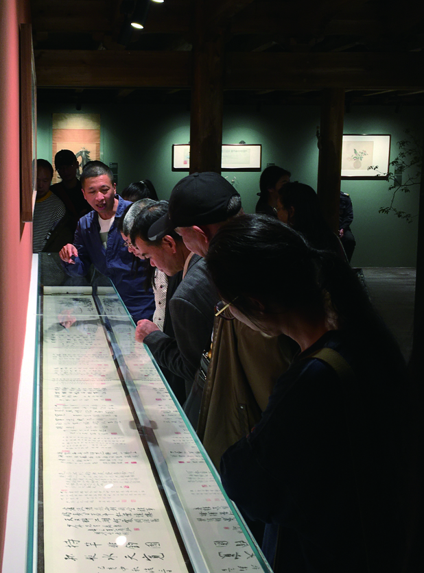 “作品状况如何?”“保安巡逻交接是否到位?”“展厅里有没有异常?”……工作联络群里,凌晨也不断闪烁消息交流现场情况,他们守护的是墨池坊“墨池飞出北溟鱼”温州藏家书画珍品特展,其中不少展品都是堪比文物的珍品。在展出的一个月中,主办方负责人没有睡过安稳觉,经常半夜起来看监控。