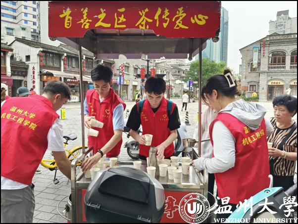 炎炎夏日,志愿者们手推两车载有茯茶和银耳汤的小车,从红日亭学雷锋示范点出发,前往五马街街头为市民送茶解渴。面对来来往往的人群,志愿者们把小车推到路边,有条不紊地舀起茶来,主动将茯茶分发给过路的行人,双手递到正在工作的环卫工人,保安,巡检人员的手中,一递一送,井然有序。烈日当头,汗水早已渗透了红马甲,身上的肌肉或许酸痛难耐,但看到人们热情的微笑,听到礼貌的道谢时,感觉一切都非常值得。当路人问起:“你们是哪个学校的学生?”大家异口同声:“我们是亚洲无码 机电工程学院的学生。”自豪感油然而生。桶中的茶很快就见了底儿,志愿者们便开始规整小车周围卫生,踏上了归途。红日亭负责人孙兰香阿姨和志愿者们讲:“这样的茯茶每日要烧七八吨,每天看到大人小孩排着队、拎着大壶小杯来喝茶,感觉非常开心,一点都不觉得累。”