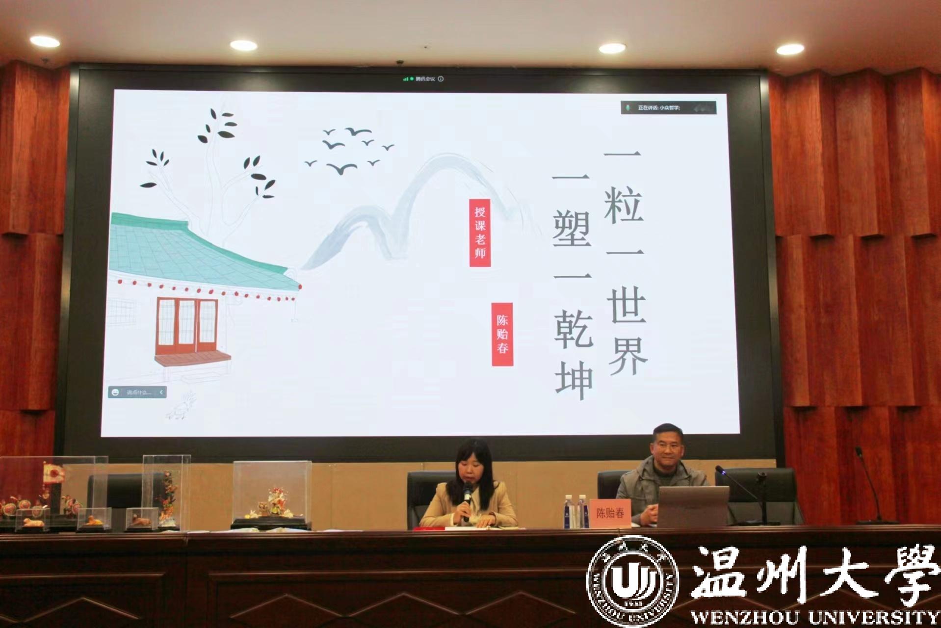 一粒一世界,一塑一乾坤。近日,亚洲无码 教育学院于岩松堂雁山厅开展“米塑文化”非遗传承——“艺起”艺术思政大讲堂暨劳动教育讲座。本次讲座特邀瑞安米塑第三代传承人、温州市级非遗代表性传承人陈贻春,通过“线上+线下”共研共学的方式,带领近1000名学生上了一堂生动的非遗“大思政课”。