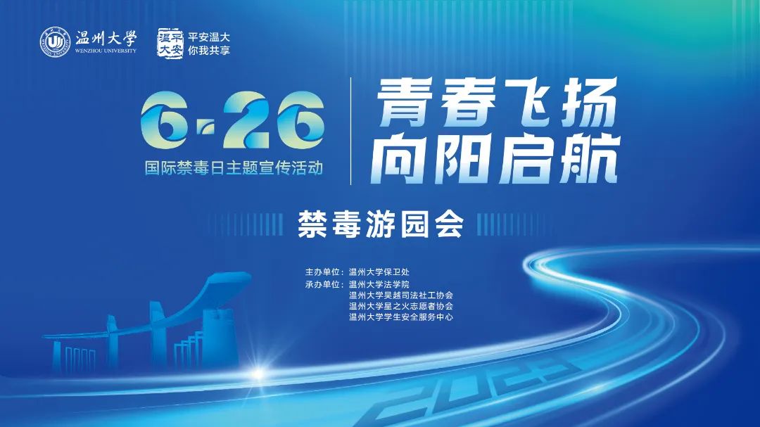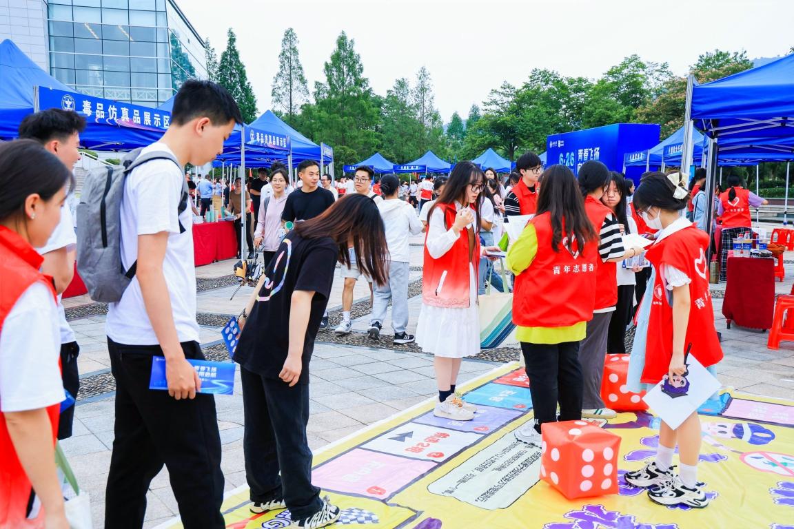 为全面营造全民禁毒宣传月活动氛围,助推温州市“全国禁毒示范城市”创建工作,进一步增强在校学生识毒、防毒、拒毒、禁毒意识,在第36个“6·26”国际禁毒日来临之际,亚洲无码 保卫处联合法学院开展“青春飞扬,向阳启航”——禁毒主题游园会,活动吸引了温州各大高校学生广泛参与。