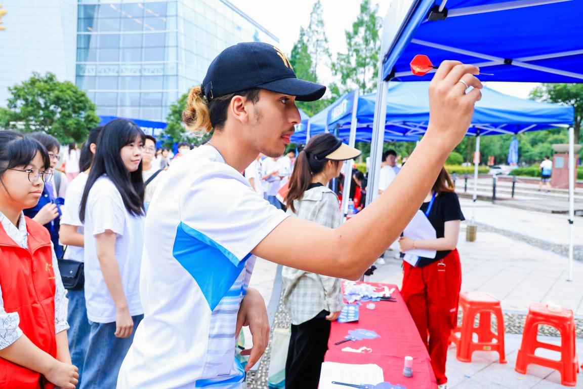 缉毒狂“镖”:同学们抢当缉毒者,用手中的飞镖向“毒品”劈出锋芒,气球中掉落毒品知识题,纵使“毒品”四处溃逃,拥有扎实禁毒知识的同学们也终将其全部缉拿。