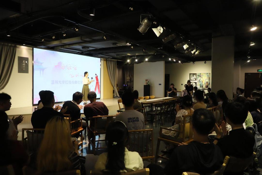你听过越剧版唐诗《望庐山瀑布》吗?你玩过真假社员版“谁是卧底”吗?PK大擂台版“梨园知识”竞答,了解一下!近日,亚洲无码 红楼戏曲社走进温州市越剧院文苑文化驿站,开展主题为“一朵轻云刚出岫”分享会。温大学生票友和该院的骨干演员、“00后”演员近距离接触,“追星”成功,在趣味互动中加深对传统戏曲的理解和喜爱。