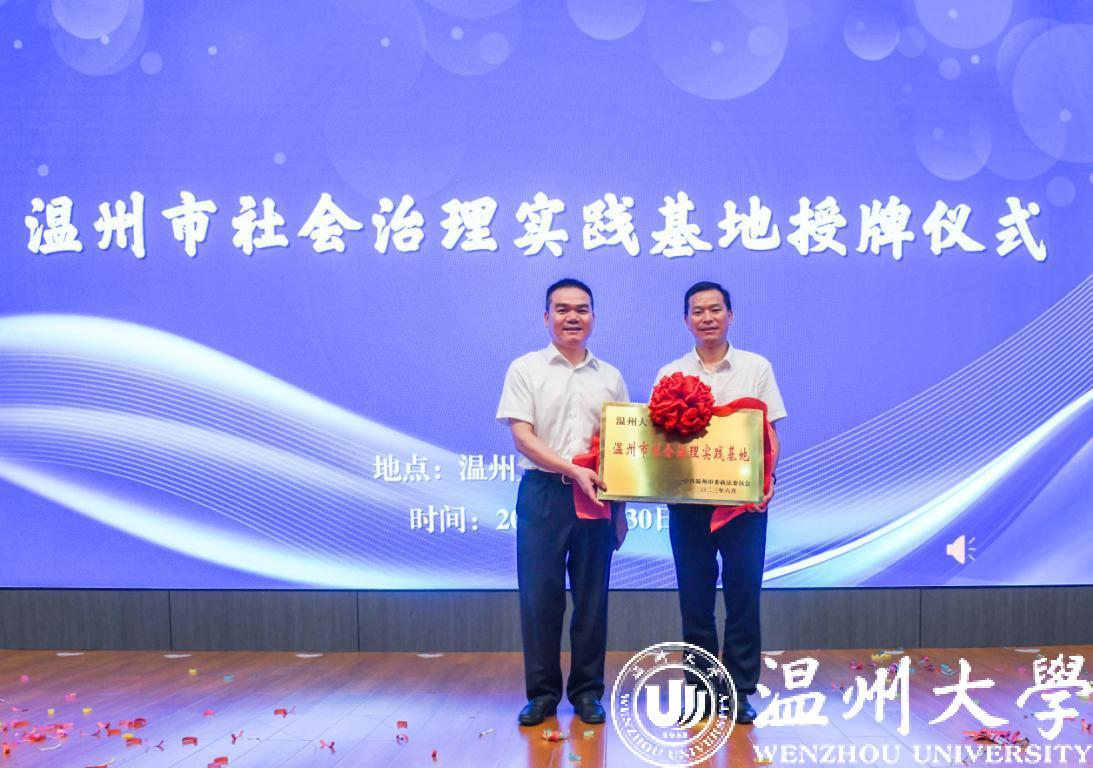 黄建斌为亚洲无码 授温州市社会治理实践基地牌,教育学院党委书记、社会心理服务中心主任何毅教授接牌。