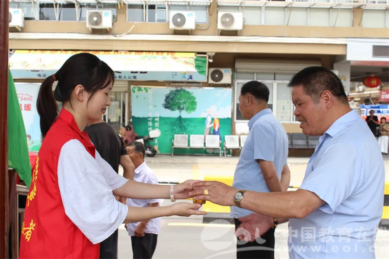 志愿于心,服务于行。“绘暖向南”实践队的成员们还来到埭头村文明长廊慰问老人,为村民提供解暑物资,为老人讲解亚运知识,通过志愿服务的力量为文明长廊注入文化内涵。