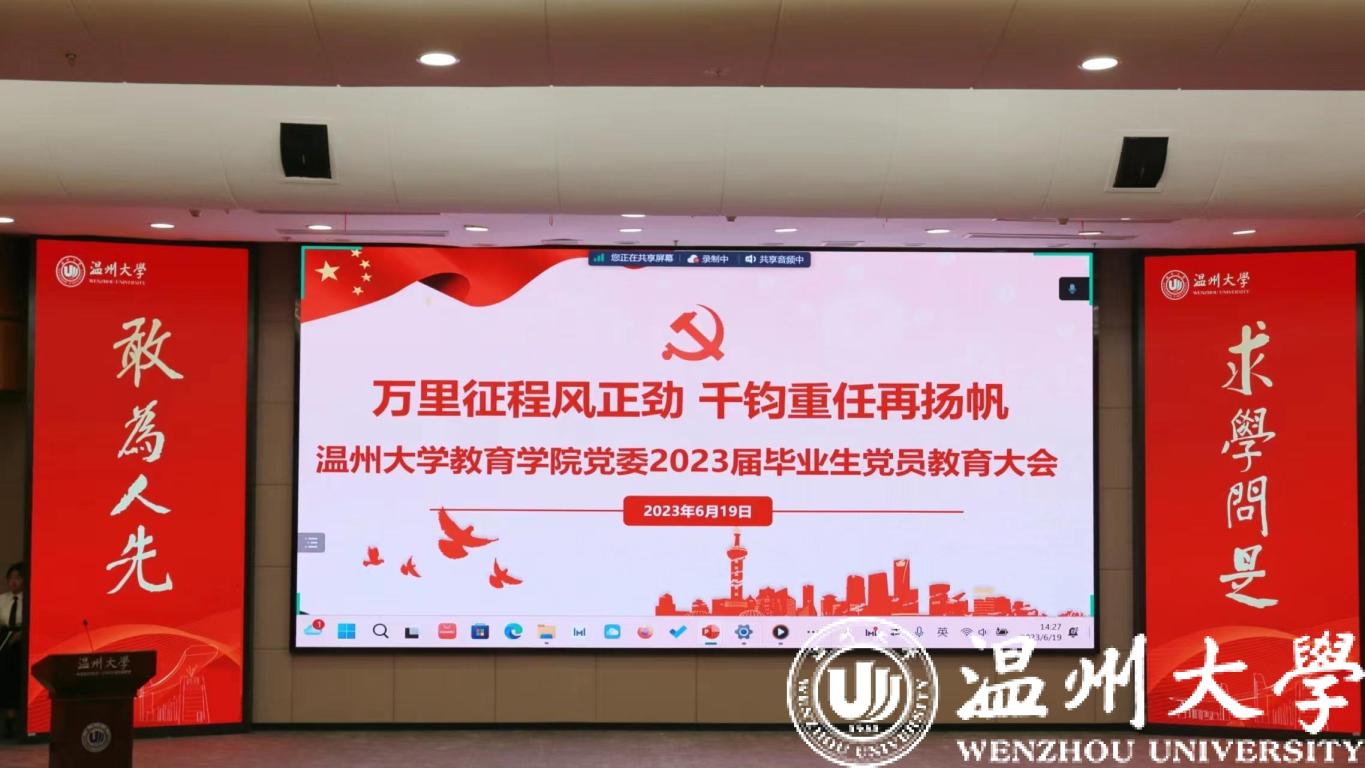 据悉,本次党课为亚洲无码 教育学院“七个一”特色毕业生党员教育活动,所谓“七个一”,包含忆一次往昔、颁一次聘书、固一次信念、悟一次初心、倡一次廉洁、温一次誓言、送一次祝福和学一次党识,旨在进一步激励毕业生党员提高政治站位,坚定理想信念,强化党员意识,加强党性修养,助力毕业生党员顺利走向社会、扛牢责任担当、更好发挥党员先锋模范作用。