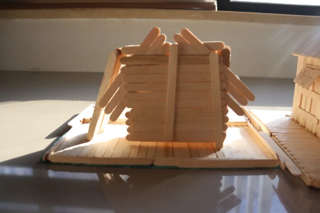 活动中,大学生志愿者们发挥自己的专业特长,向孩子们讲述历史气息浓厚的温州古建筑,并以图文影视等方式带领他们观赏鹿城中山公园、江心屿文天祥祠,温州妙果寺、三垟周氏旧宅,龙湾永昌堡、瑞安圣井山石殿、洞头望海楼、乐清百岁亭等古建筑,讲述一个个有趣的故事。在孩子们一声声惊叹中,进入到本次课程的高潮部分——化身小小建筑师,搭建独特风格的建筑。大学生志愿者们将孩子们分成多个小组指导他们设计建筑图并动手实验,引导孩子们建地基、搭木房、配装饰等。在这期间,每一个孩子都积极地参与,表达自己的想法,利用雪糕棍和胶水将想法付诸于作品,最后的成品都栩栩如生。
