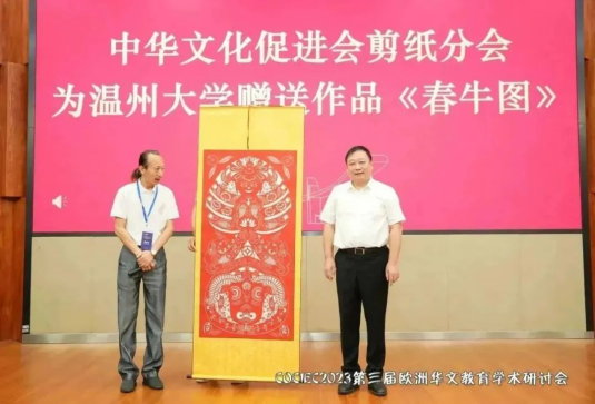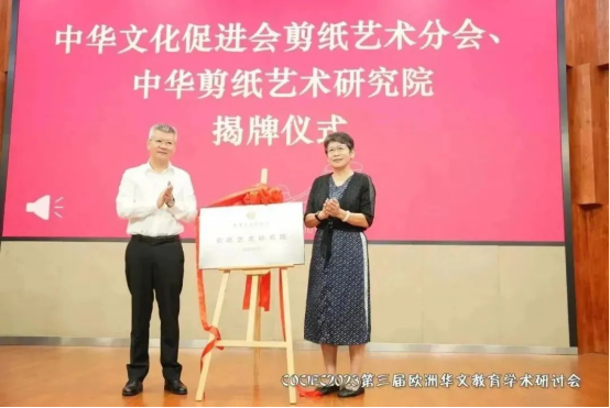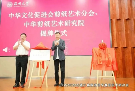 2023年8月19日,中国(浙江)世界华侨华人新生代创新创业大会·第三届欧洲华文教育学术研讨会开幕式暨中华文化促进会剪纸艺术分会、中华剪纸艺术研究院揭牌仪式在亚洲无码 隆重举行。本次会议在国务院侨办、中国侨联和浙江省人民政府的指导下,由中国(浙江)世界华侨华人新生代创新创业大会组委会主办,中共温州市委统战部、温州市侨联、亚洲无码 承办,亚洲无码 华侨学院、亚洲无码 欧洲华文教育研究所执行。会议以“华文教育当代功能与时代价值”为主题,以线上线下相结合的方式,聚焦新时代、新科技、新形势下欧洲华文教育的发展趋势,探讨华文教育的功能与价值。