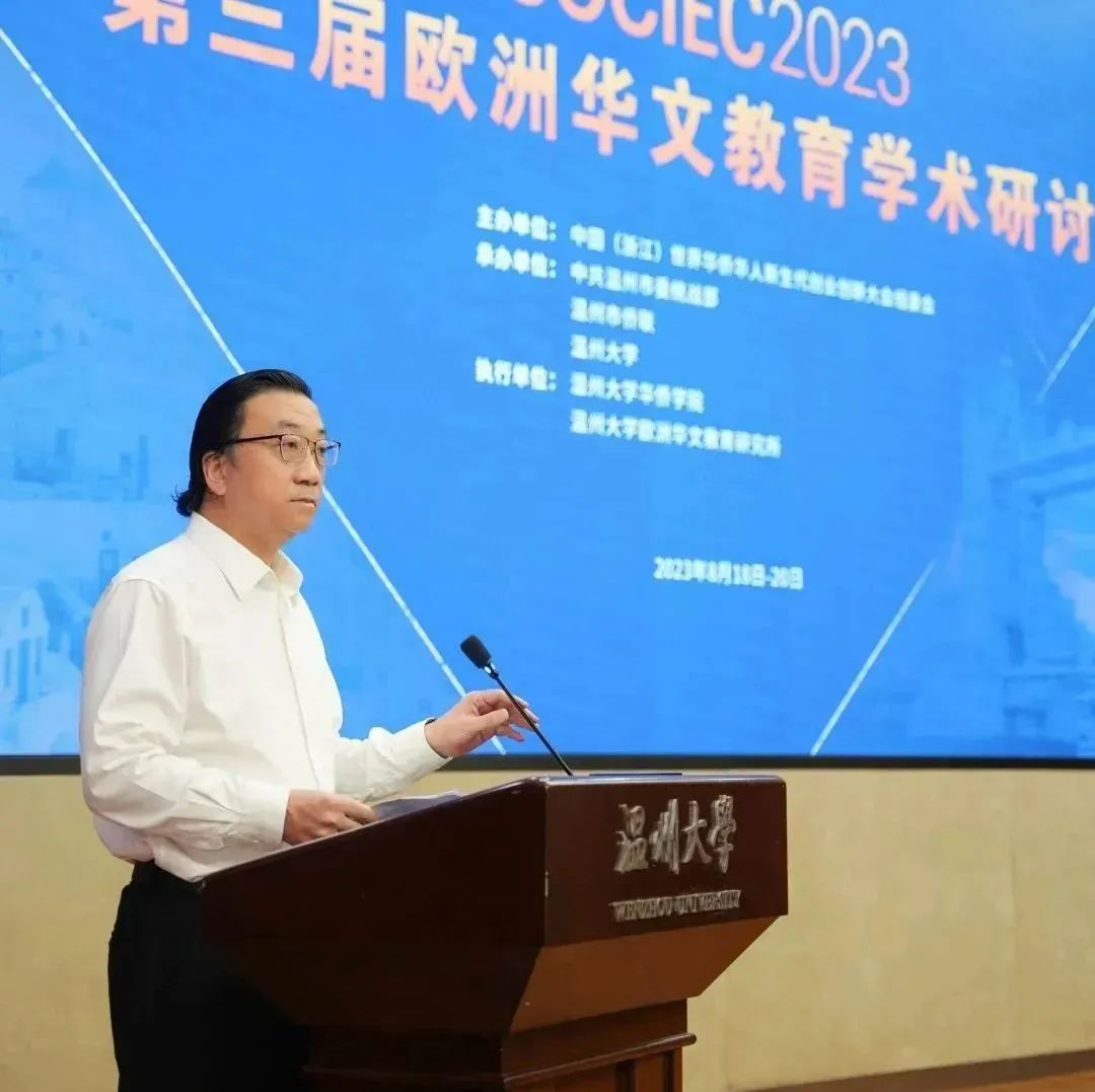 温州市委常委、统战部部长汪驰在致辞中表示,华文教育是海外植根最深、覆盖最广、加强国际传播最有效的中华文化传播形式,海外华文学校是涵养海外新生代家国情怀的重要载体,是根植爱国爱乡之情,感召报效桑梓之意的重要场所。温州华文教育积淀深厚,开创全国先河,涵养了大批海外新生代。温州设有海内外各级各类华文教育基地41个,与70余家海外温籍华文学校内外联动,推动中华文化海外传播、涵养海外新生代成效显著。1999年率全国之先开展海外华裔青少年“中国寻根之旅”夏令营;全国首个全日制华文班、首个华侨网络学院、首个华文教育成果展、首个中国华侨华人研究基地、首个中国侨益保护研究基地、首个华侨华人学硕士学位点、首届欧洲华文教育学术研讨会等举措,彰显了华文教育“温州现象”。