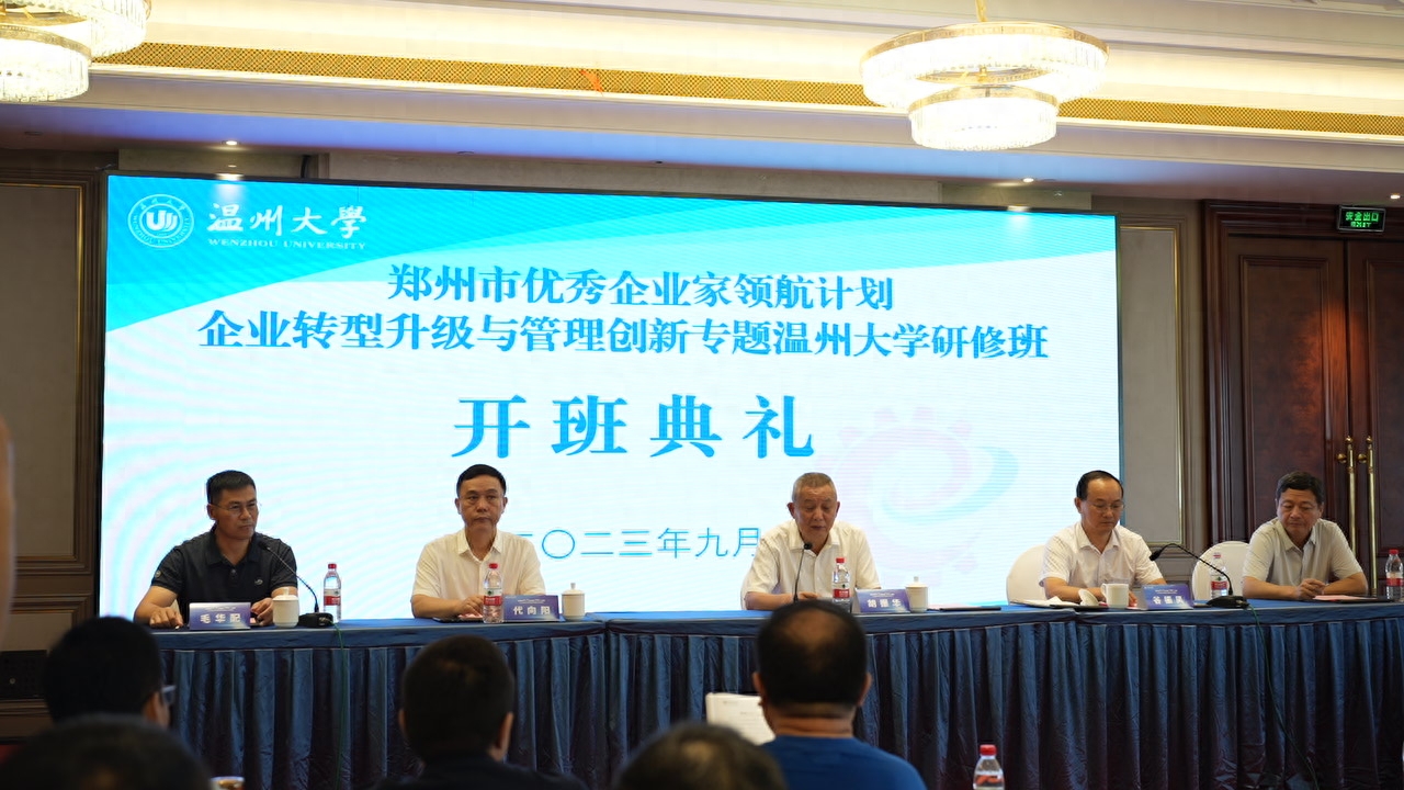 2023年9月10日至16日,由郑州市工业和信息化局举办的郑州市优秀企业家领航计划——企业转型升级与管理创新亚洲无码 研修班,在民营经济发祥地温州成功举办。亚洲无码 商学院院长胡振华致欢迎词,亚洲无码 教授毛华配主持开班仪式,郑州市工业和信息化局党组成员、副局长谷振风出席开班仪式并作动员讲话、党组成员、一级调研员代向阳、郑州市政府办公厅二级调研员袁希刚出席开班仪式,各区县(市)工信部门负责人、领航计划企业家等208人参加培训。