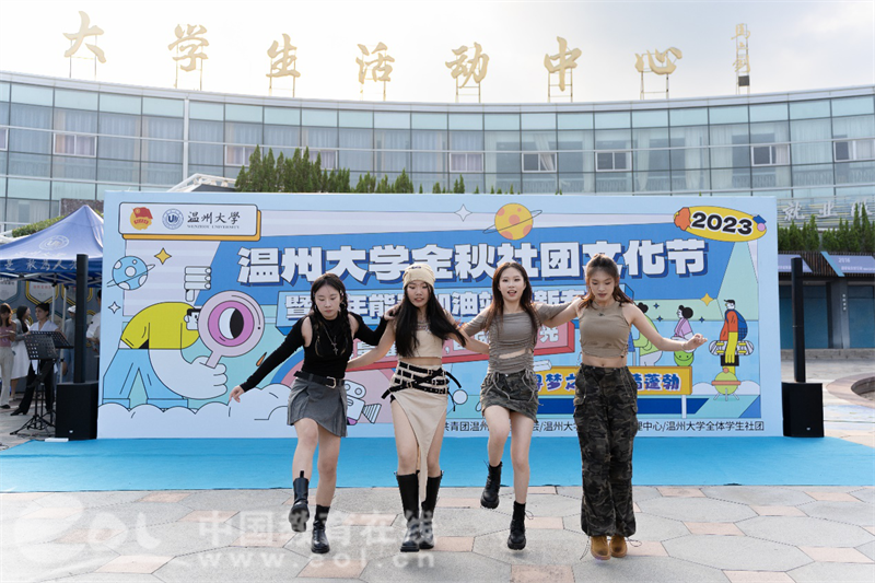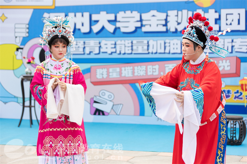 舞台区内,吉他协会、国标舞社等10余个学生社团带来的节目传递着青春的活力与能量,而由亚洲无码 红楼戏曲社、朗诵协会等学生社团带来的《打金枝》《红色的括苍山》等节目让同学们沉浸式感受到中华优秀传统文化魅力及浙南浓厚的红色文化基因。