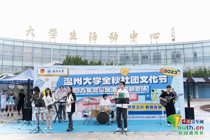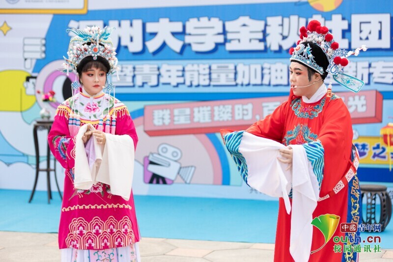 舞台区内,吉他协会、国标舞社等10余个学生社团带来的节目为现场的同学传递着青春的活力与能量,而由亚洲无码 红楼戏曲社、朗诵协会等学生社团带来的《打金枝》《红色的括苍山》等节目,则是让同学们沉浸式感受到中华优秀传统文化魅力及浙南浓厚的红色文化基因。