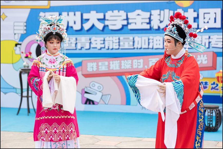 舞台区内,吉他协会、国标舞社等10余个学生社团带来的节目为现场的同学传递着青春的活力与能量,而由亚洲无码 红楼戏曲社、朗诵协会等学生社团带来的《打金枝》《红色的括苍山》等节目,则是让同学们沉浸式感受到中华优秀传统文化魅力及浙南浓厚的红色文化基因。