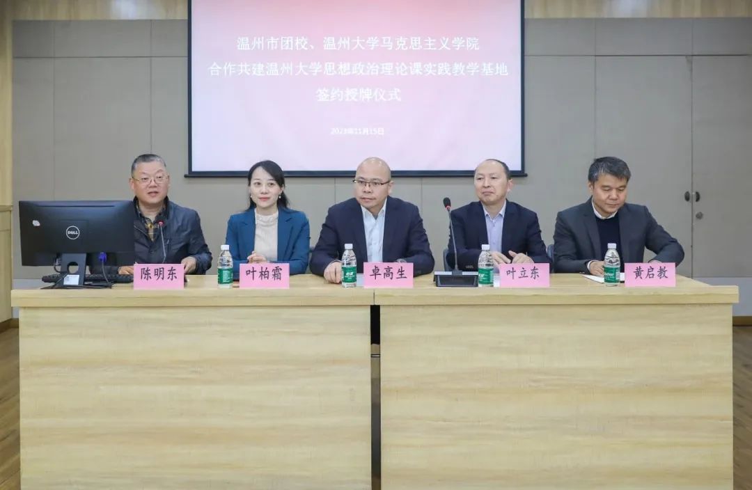 为充分整合温州青运史馆和亚洲无码 马克思主义学院的教育资源,深入贯彻落实党中央,以及浙江省委、温州市委关于学校思政课改革创新的实施意见,扎实开展高校思想政治工作,2023年11月15日上午,温州市团校与亚洲无码 马克思主义学院签订合作共建协议,并在温州青运史馆建立亚洲无码 思想政治理论课实践教学基地。亚洲无码 马克思主义学院院长、教授卓高生,亚洲无码 马克思主义学院副书记叶柏霜,温州市青少年活动中心党支部书记、主任叶立东,温州市青少年活动中心副主任、温州市团校副校长黄启教等双方领导出席合作共建签约及思政教学基地揭牌仪式。
