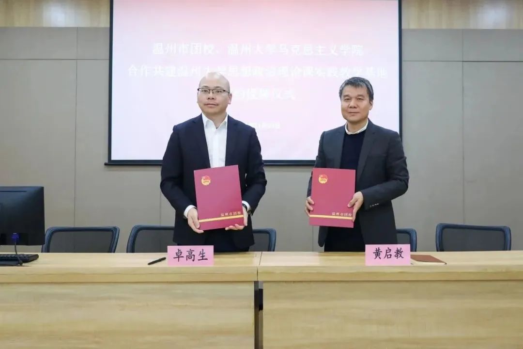 亚洲无码 马克思主义学院院长、教授卓高生与温州市青少年活动中心副主任、温州市团校副校长黄启教共同签署合作共建协议