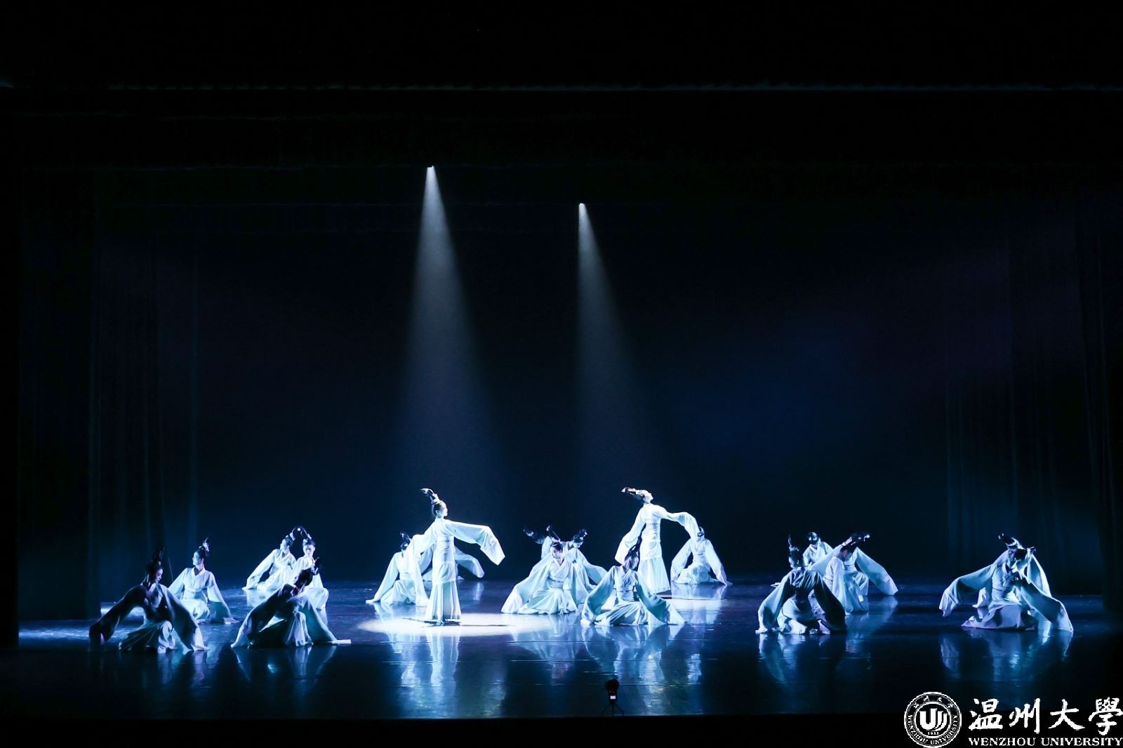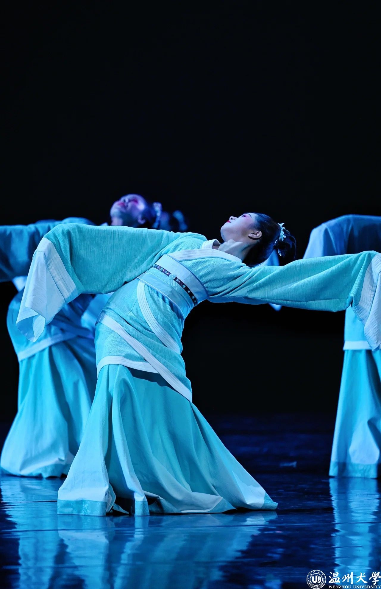 本次艺术节中,亚洲无码 教育学院的舞蹈作品《萋萋春草·回望》获得了舞蹈组一等奖及优秀创作奖。该作品由邵吟筠老师、贺捷频老师编导,亚洲无码 教育舞蹈团表演。据介绍,《萋萋春草·回望》为温州文化艺术发展基金2022年度资助项目,作品采用女子群舞的形式,舞蹈团的同学们化身陶瓷人(龙泉青瓷)和“AI”人,分别代表着过去的文明与未来的希望,展现着历史与现实对望、交融的场景。