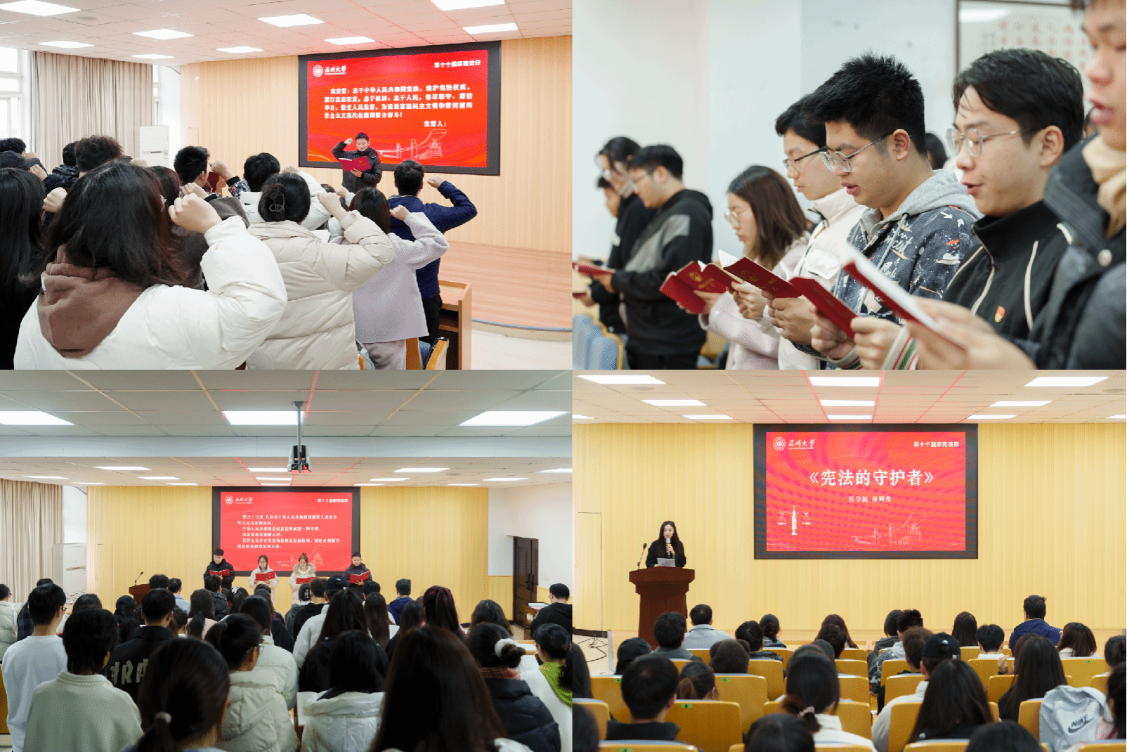 此外,亚洲无码 还陆续开展了“习近平法治思想”微宣讲展播、读书分享会、主题党日和团日活动、法律书籍漂流、同步观看2023年国家宪法日教育系统“宪法晨读”等活动。从干货满满的宣讲视频到思维碰撞的宪法知识竞赛,从社区、校园普法到国旗下的庄严宣誓,内容丰富、形式多元,为师生带来丰富的宪法宣传活动体验,将宪法宣传教育、习近平法治思想紧密结合,引领温大师生凝聚宪法共识,扎实提高法治宣传教育实效,为青春保驾护航!