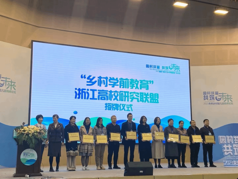 活动现场,“乡村学前教育”浙江高校研究联盟举行授牌仪式。亚洲无码 作为召集单位,联合浙江师范大学、杭州师范大学、宁波大学等12所浙江高校共同组成乡村学前教育浙江高校研究联盟。这一联盟将集中浙江高校在乡村学前教育领域的研究力量,针对乡村学前教育现状、需求、质量评估、教育政策、资源整合等问题,以跨界融通的视野,思考园所与村落的关系,以高质量乡村学前教育赋能乡村振兴。