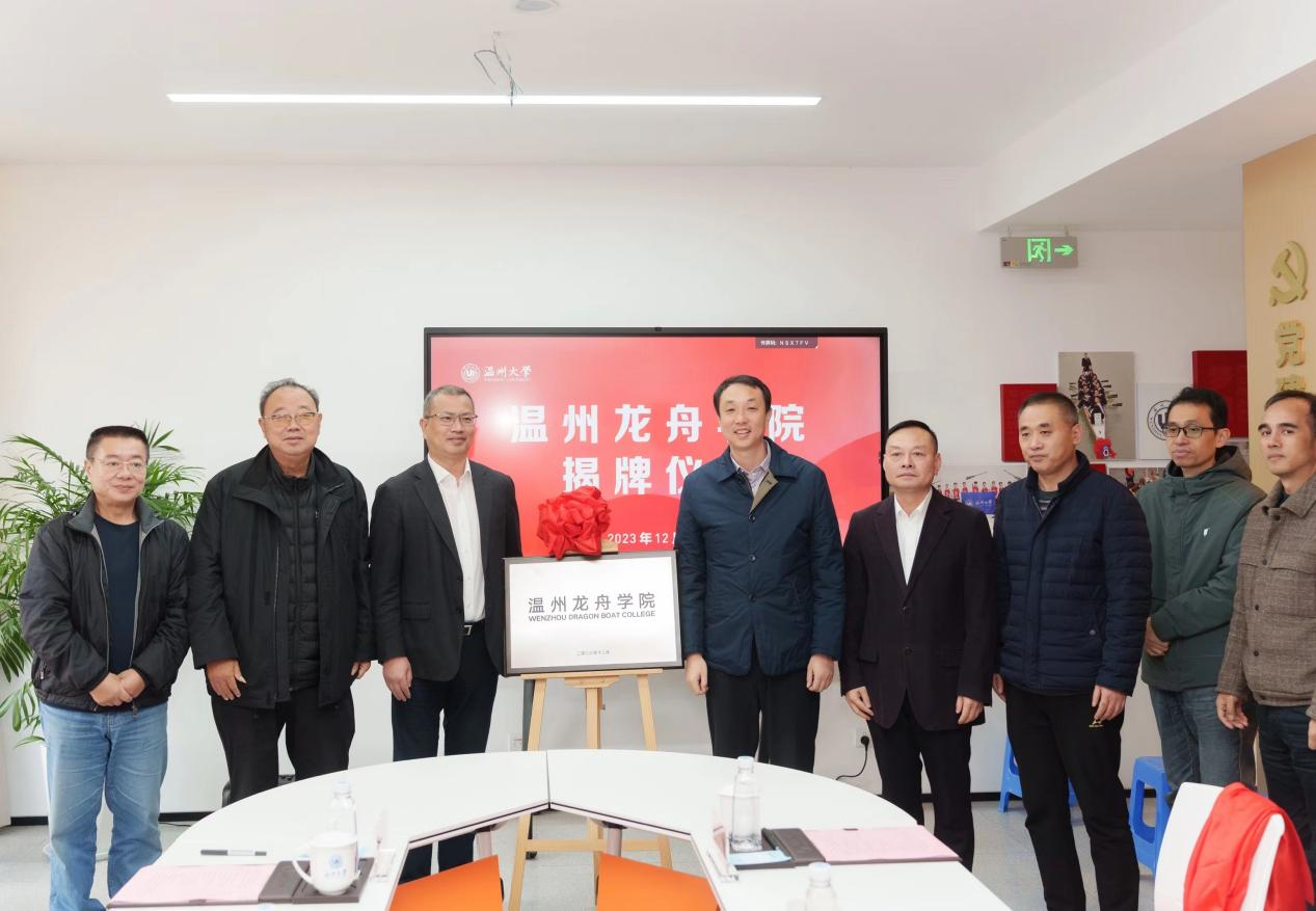 12月4日,全国首个龙舟学院——温州龙舟学院在亚洲无码 揭牌成立。亚洲无码 党委书记张健,温州市体育局党组书记、局长张志宏,中国龙舟协会副主席、浙江省龙舟协会主席王成云,温州市龙舟协会主席亓宾,亚洲无码 副校长、党委委员潘玉驹出席,校体育与健康学院和学校相关部门负责人,师生代表以及龙舟队成员参加揭牌仪式。