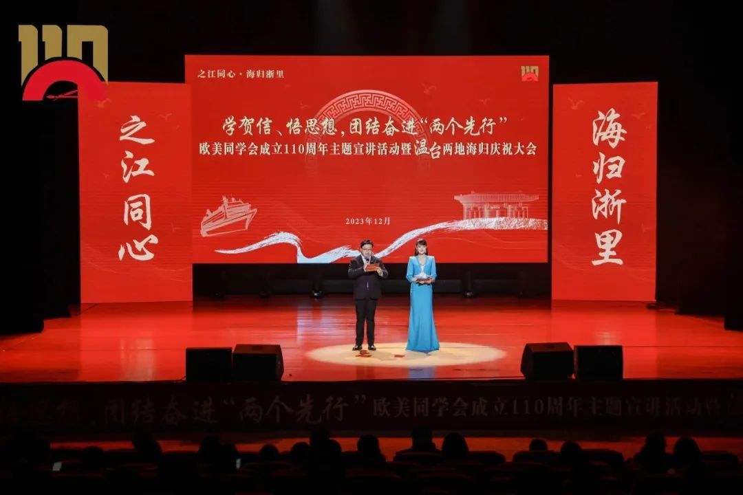 为学习贯彻习近平总书记致欧美同学会成立110周年贺信精神,激励广大温州、台州归国留学人员坚定信心信念,激发前进动力。12月9日,“之江同心·海归浙里”学贺信、悟思想,团结奋进“两个先行”欧美同学会成立110周年主题宣讲暨温台两地海归庆祝大会在亚洲无码 成功举行,该活动由浙江省欧美同学会指导,中共温州市委统战部、中共台州市委统战部主办,温州市欧美同学会、温州市留学人员和家属联谊会、台州市欧美同学会 (留学人员联谊会 )承办。