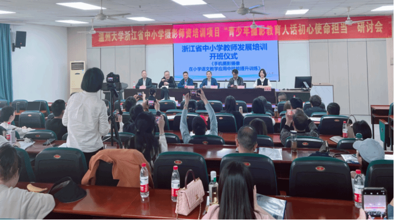 12月8日,“以摄影为矩 燃教育之火”胡铸鑫摄影艺术创作研讨会暨亚洲无码 青少年摄影美育研究中心(筹)申办座谈会在亚洲无码 教育学院召开。来自全国青少年摄影教育指导委、亚洲无码 、温州商学院专家教授,温州市瓯海区中小学(幼儿园)校长代表和来自全省各地的浙江省中小学摄影教师专业发展培训班的教师代表40余人参加研讨会。