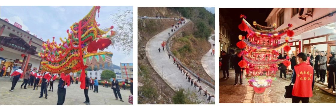 也许始祖来自乐清海滨的原因,大嶂一年最隆重民俗仪式是“元宵划龙船”。正月初八起,接龙、迎佛、挂红、游龙、收妖,直到正月十六的送龙、光龙,天南海北的大嶂人都赶回家乡敬送五岳爷归殿,村庄至上殿的山路上锣鼓喧天,灯火辉煌,“光龙”时那段截下留待明年再用的“龙骨”,或许不是节约材料,而是龙脊龙脉的传承吧。