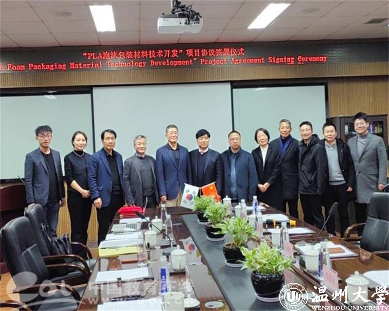 1月8日下午,随着“聚乳酸泡沫包装材料开发”项目的顺利签约,又一项国际合作项目落户亚洲无码 化材学院,这是该院继与加拿大滑铁卢大学联合申报的实验室获批浙江省国际联合实验室后又一项国际合作成果。该项目以温大化材学院国家特聘专家黄承哲教授为负责人,合作方为韩国EPS KOREA株式会社,双方共同合作开发新型高分子环保材料。
