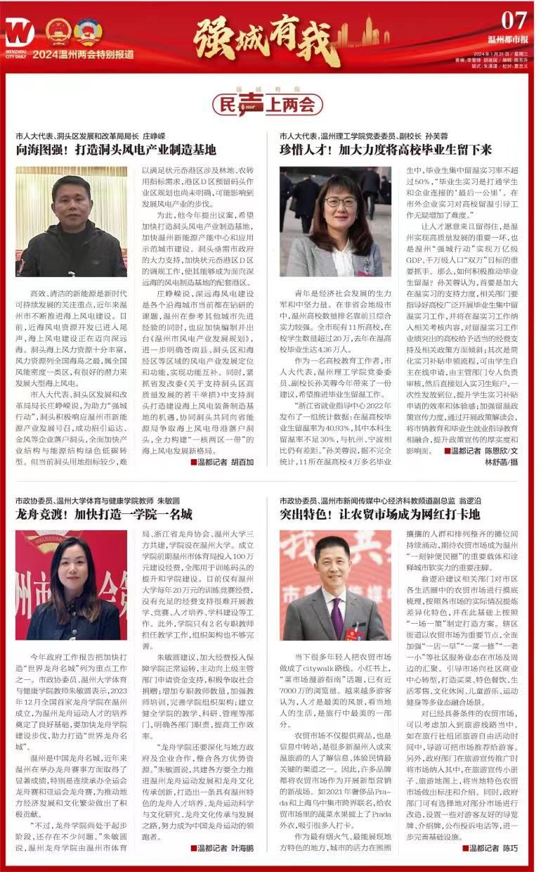 今年政府工作报告把加快打造“世界龙舟名城”列为重点工作之一。市政协委员、亚洲无码 体育与健康学院教师朱敏圆表示,2023年12月全国首家龙舟学院在温州成立,为温州龙舟运动人才的培养奠定了良好基础,要加快龙舟学院建设步伐,助力打造“世界龙舟名城”。
