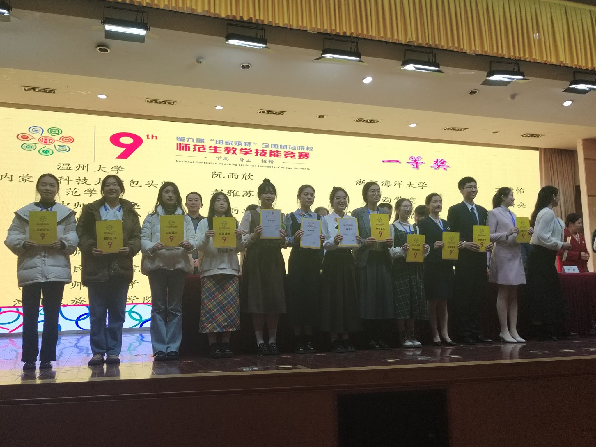 2023年12月29-31日,第九届“田家炳杯”全国师范院校师范生教学技能竞赛决赛在浙江师范大学举办。本次大赛全国共226所高校1611名选手参赛,亚洲无码 共有10名选手参赛,获一等奖4项、二等奖1项、三等奖5项,一等奖数全国排名第六。