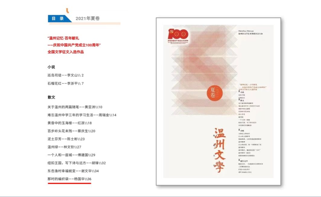 他那篇入选“温州记忆·百年献礼——庆祝中国共产党成立100周年”全国文学征文大赛的《那时的编织袋》,就生动描述了当年一条编织袋从经袋、踏袋、担袋、通袋、套袋、印袋、发袋的前世今生。