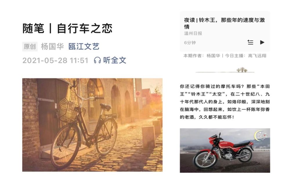 说起手表,我想起国华在《记忆中的老手表》里,回忆上学路上接过爸爸的手表时:“我低着头,瞅着自己的鞋子,将右鞋尖在石头路上摩了好几圈,才接过爸爸的手表,戴在了左手腕……我走了好长的一段路,回头,见爸爸还站在石板桥上,我看了看手表,6点整,一条直线,低头我是分针,抬头爸爸是时针。”“那天晚上,弟弟与我睡觉时,我戴在了他的手上,等他睡着了,又戴回自己的手上。”他人生的第一首诗是写给弟弟的,一次父母不在身边,弟弟抓着哥哥的手在瓜摊前不走,国华“花2分钱给弟弟买了一只菜瓜,弟弟吃得香甜,口水与籽黄蜜汁不时地滴下。那天晚上弟弟睡着了,梦呓里说着“菜瓜甜,我要吃,”张开的嘴巴里淌下了涎水。暑假过后,老师要同学们写一篇暑假里最值得记忆的文章,国华当时就写了一首儿童诗:“弟弟睡着了,梦话说着菜瓜甜,他流下了口水,不,这不是口水,这是他心里淌出的蜜。”
