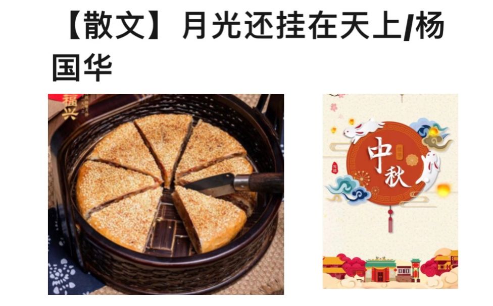 按平阳风俗,中秋节外婆要送月饼给外甥吃。每年中秋外婆定好有花生、桂圆、白糖、脊膘肉、冬瓜糖做馅,外面一层厚厚的白芝麻的三个桥墩大月饼,还有柚子、西瓜、土豆等时令产品,让大舅舅担着送到国华家。有一次,大舅舅送月饼途中遇到一家烟花厂爆炸,大舅舅扔下箩筐去救火救人,失落了月饼,大舅舅又花了3个多小时去桥墩,中秋夜很晚才赶到国华家,母亲惊喜打开家门,孩子们兴奋的扑上去,大舅舅的头上、肩上、扁担上全是白花花的月光,颠沛一天的大舅舅还朗朗有声的唱起童谣:“丁丁郎、嘎嘎郎,八月十五有月光;月光中央有娑罗树,娑罗树顶开白花。”