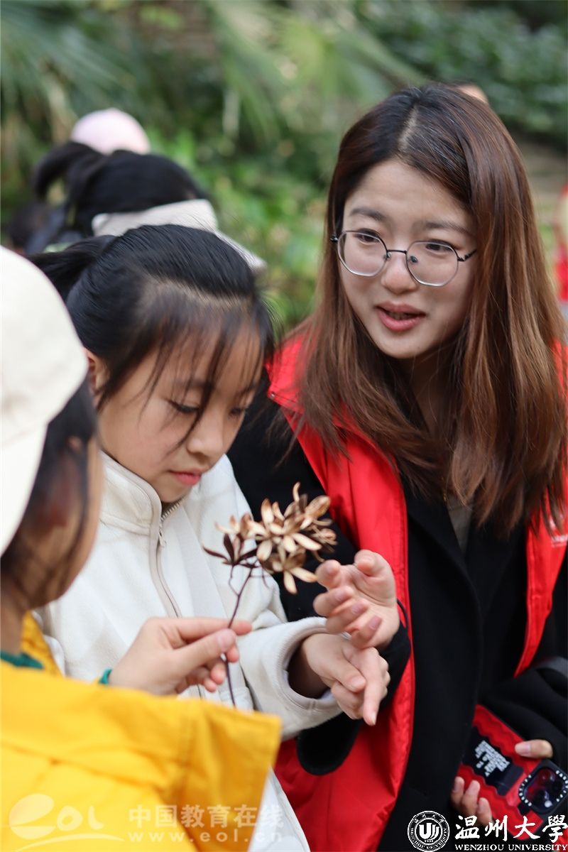 春回大地万物苏,又是植树好时节。为学习贯彻习近平生态文明思想,激发全社会对爱护植物和保护环境的意识。近日,亚洲无码 生命与环境科学学院的志愿者面向市民开展了一场“大自然的科普课”,带领研学小朋友走出课堂,走进温州景山植物园,开启植物认知之旅。