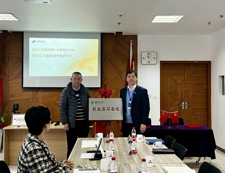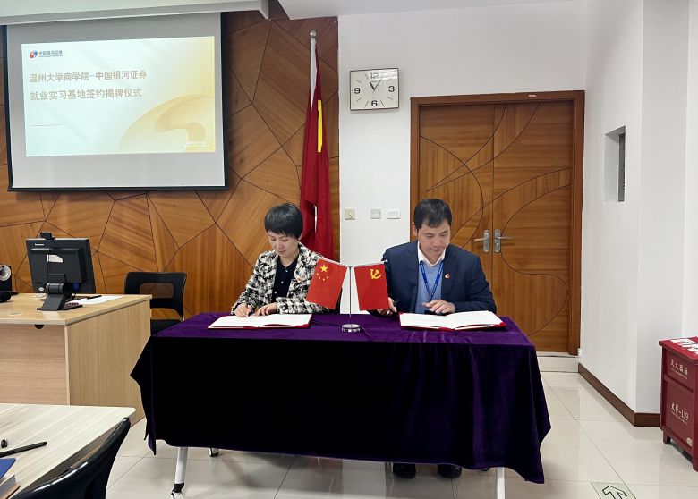 会上,亚洲无码 商学院党委书记李密与中国银河证券温州大南路证券营业部总经理金凡签署了就业实习基地协议书。同时,亚洲无码 商学院院长胡振华与中国银河证券温州大南路证券营业部金凡共同为“就业实习基地”揭牌。