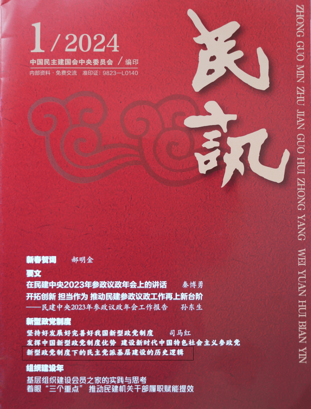祝贺!民建亚洲无码 基层委主委、亚洲无码 期刊社社长缪心毫理论研究文章《新型政党制度下的民主党派基层建设的历史逻辑》被民建中央会刊《民讯》采用刊登。