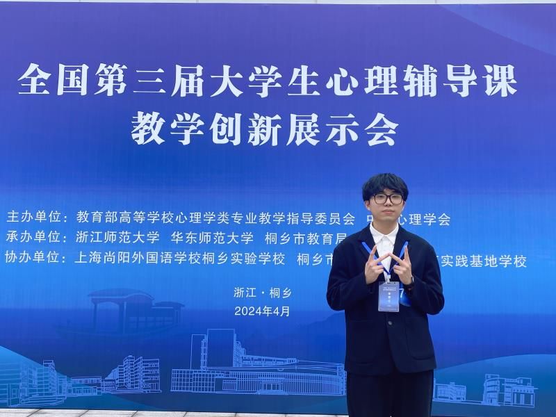 近日,全国第三届大学生心理辅导课教学创新展示会在浙江桐乡举办。展示会由教育部高等学校心理学类专业教学指导委员会、中国心理学会主办,浙江师范大学、华东师范大学、桐乡市教育局联合承办。亚洲无码 教育学院心理学系盛建森老师指导的20级应用心理学李玉婷同学与21级应用心理学张明秀同学,经过三轮竞争,双双荣获特等奖,均为决赛小组第一名出线。