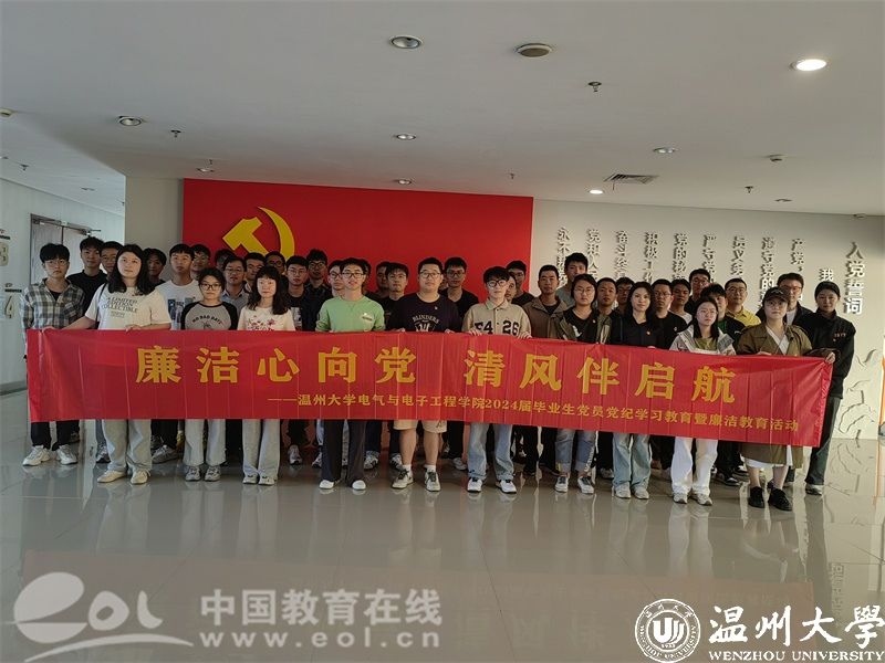 5月10日下午,在毕业生们即将踏上人生新的征程之际,亚洲无码 电气与电子工程学院党委组织毕业生党员赴温州市瓯海区廉政教育基地开展毕业生党员党纪学习教育暨廉洁教育主题党日活动,旨在引导青年学生坚定理想信念,增强廉洁意识,扎实走好迈向社会的第一步。